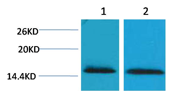 Western blot analysis of 1) Hela, 2)3T3?with Histone H2B(Tri Methyl Lys43) Rabbit pAb EA092 diluted at 1:2,000.