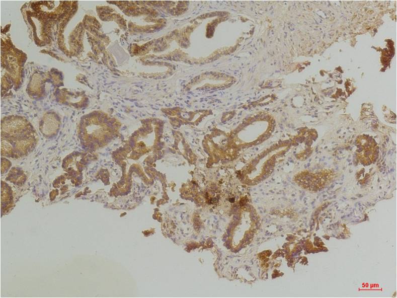Immunohistochemical analysis of paraffin-embedded Human Prostate Tissue using Endothelin B Receptor(EA282)Rabbit pAb diluted at 1:200.
