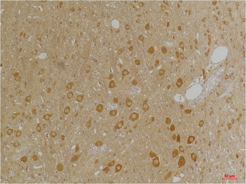 Immunohistochemical analysis of paraffin-embedded Rat BrainTissue using GABA A Receptor α3 (EA286)Rabbit pAb diluted at 1:200.