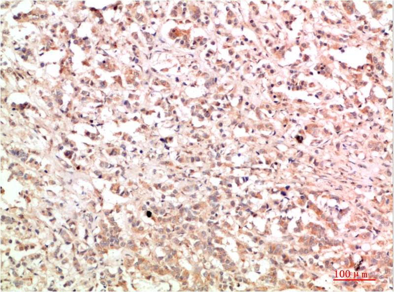 Immunohistochemical analysis of paraffin-embedded Human Breast Carcinoma Tissue using c-Ab1(EA355)Rabbit pAb diluted at 1:200.