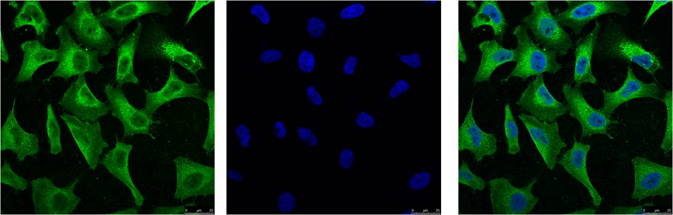 Background: The epidermal growth factor receptor (EGFR; ErbB-1; HER1 in humans) is the cell-surface receptor for members of the epidermal growth factor family (EGF-family) of extracellular protein ligands. Known ligands include EGF, TGFA/TGF-alpha, amphiregulin, epigen/EPGN, BTC/betacellulin, epiregulin/EREG and HBEGF/heparin-binding EGF. Ligand binding triggers receptor homo- and/or heterodimerization and autophosphorylation on key cytoplasmic residues. The phosphorylated receptor recruits adapter proteins like GRB2 which in turn activates complex downstream signaling cascadesβ-Actin is one of six different actin isoforms that have been identified. The actin molecules found in cells of various species and tissues tend to be very similar in their immunological and physical properties. Therefore, Antibodies against β-Actin are useful as loading controls for Western Blotting. However it should be noted that levels of β-Actin may not be stable in certain cells. For example, expression of β-Actin in adipose tissue is very low and therefore β-Actin should not be used as loading control for these tissues.