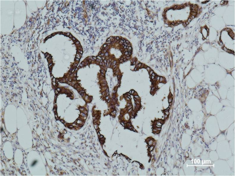Background: Keratin 18 is a type I cytokeratin. It is, together with its filament partner keratin 8, perhaps the most commonly found products of the intermediate filament gene family. They are expressed in single layer epithelial tissues of the body. Mutations in this gene have been linked to cryptogenic cirrhosis. Two transcript variants encoding the same protein have been found for this gene.Keratin 18 is often used together with keratin 8 and keratin 19 to differentiate cells of epithelial origin from hematopoietic cells in tests that enumerate circulating tumor cells in blood.