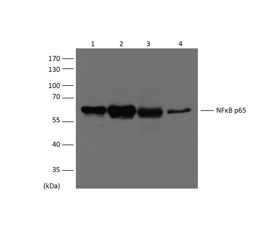 Background: NFkB p65 is ubiquitinated leading to its proteosomal degradation, which is required for termination of the NFkB response. Phosphorylation of NFkB p65 on S536 stimulates acetylation of K310 by CBP, enhancing transcriptional activity. NFkB p65 is also acetylated at K122, enhancing DNA binding and impairing the interaction with NFKBIA. The protein is deacetylated by HDAC3. Invasion of a host by a pathogen is frequently associated with the activation of NF-kB, which coordinates various aspects of immune function required for resistance to infection.