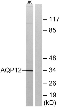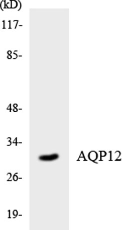 The antiserum was produced against synthesized peptide derived from human AQP12. AA range:231-280