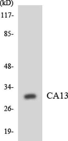 The antiserum was produced against synthesized peptide derived from human CA13. AA range:141-190