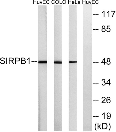 The antiserum was produced against synthesized peptide derived from human SIRPB1. AA range:231-280