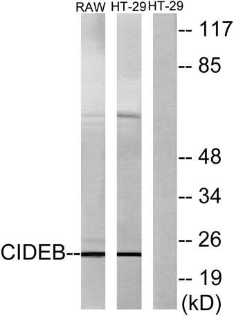 The antiserum was produced against synthesized peptide derived from human CIDEB. AA range:91-140