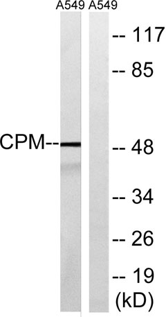 The antiserum was produced against synthesized peptide derived from human CPM. AA range:71-120