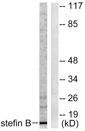 The antiserum was produced against synthesized peptide derived from human Stefin B. AA range:49-98
