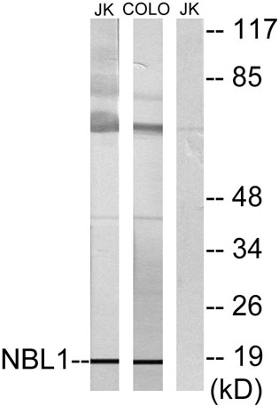 The antiserum was produced against synthesized peptide derived from human NBL1. AA range:131-180