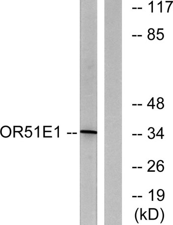 The antiserum was produced against synthesized peptide derived from human OR51E1. AA range:241-290