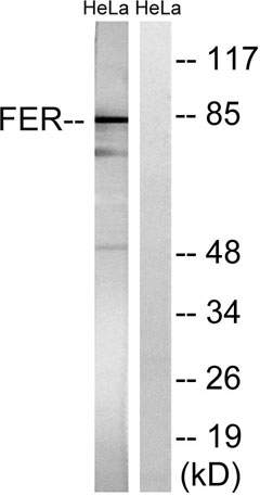 The antiserum was produced against synthesized peptide derived from human FER. AA range:371-420