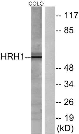 The antiserum was produced against synthesized peptide derived from human HRH1. AA range:141-190