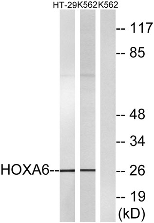 The antiserum was produced against synthesized peptide derived from human HOXA6. AA range:101-150
