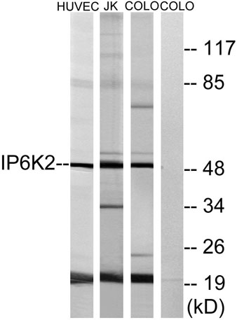 The antiserum was produced against synthesized peptide derived from human IP6K2. AA range:161-210