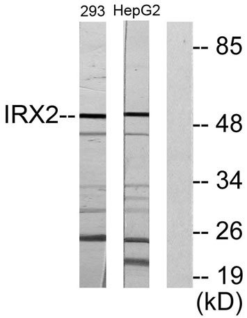The antiserum was produced against synthesized peptide derived from human IRX2. AA range:231-280