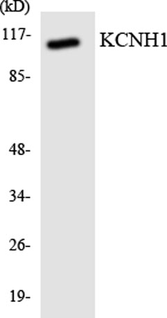 The antiserum was produced against synthesized peptide derived from human KCNH1. AA range:720-769