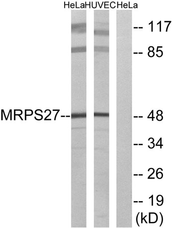 The antiserum was produced against synthesized peptide derived from human MRPS27. AA range:16-65