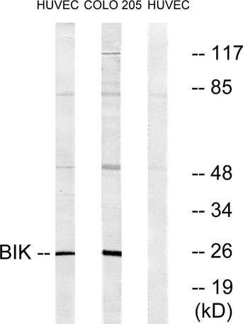 The antiserum was produced against synthesized peptide derived from human BIK. AA range:18-67
