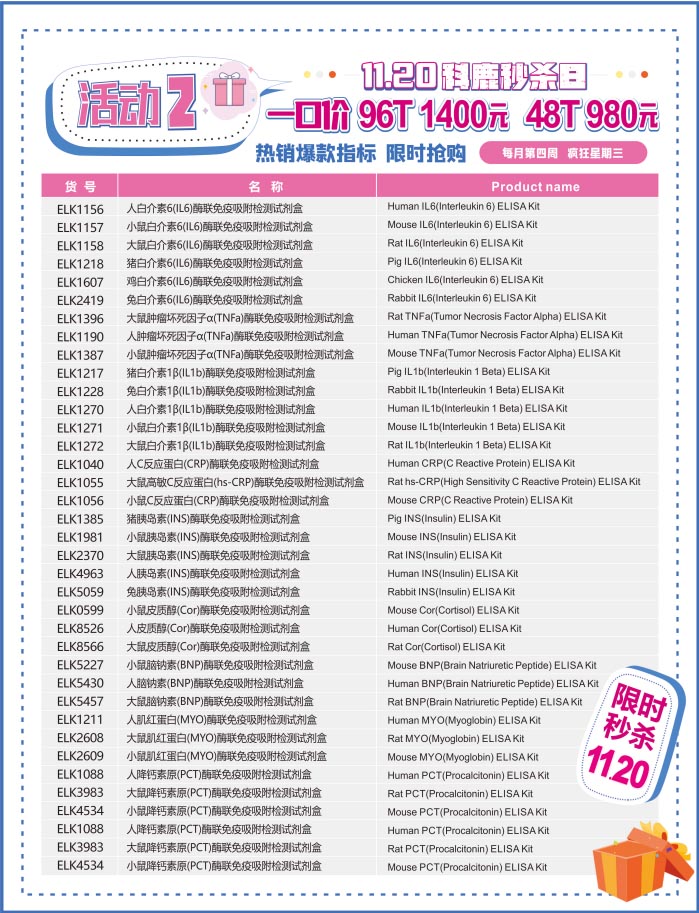 ELK 全場(chǎng) ELISA 試劑盒優(yōu)惠多多,有賣(mài)有送
