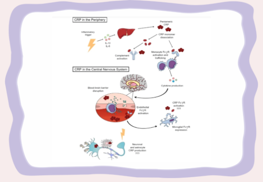 染色質(zhì)和小核核糖核蛋白等細(xì)胞核成分。CRP 主要在肝臟產(chǎn)生神經(jīng)元、動(dòng)脈粥樣硬化斑塊、
