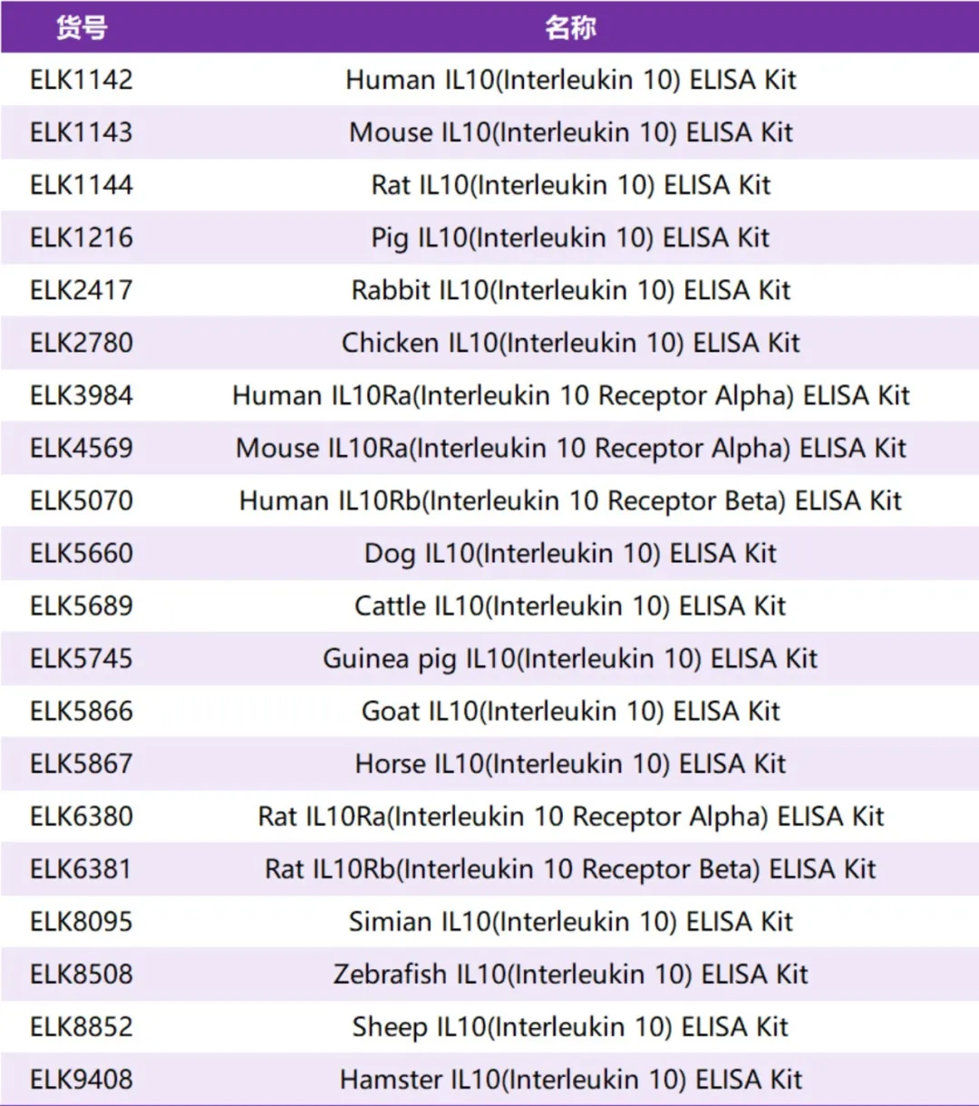 為了幫助科研工作者們更好的研究白細(xì)胞介素10,科鹿生物推出了多種類別白細(xì)胞介素10相關(guān)的ELISA試劑盒: