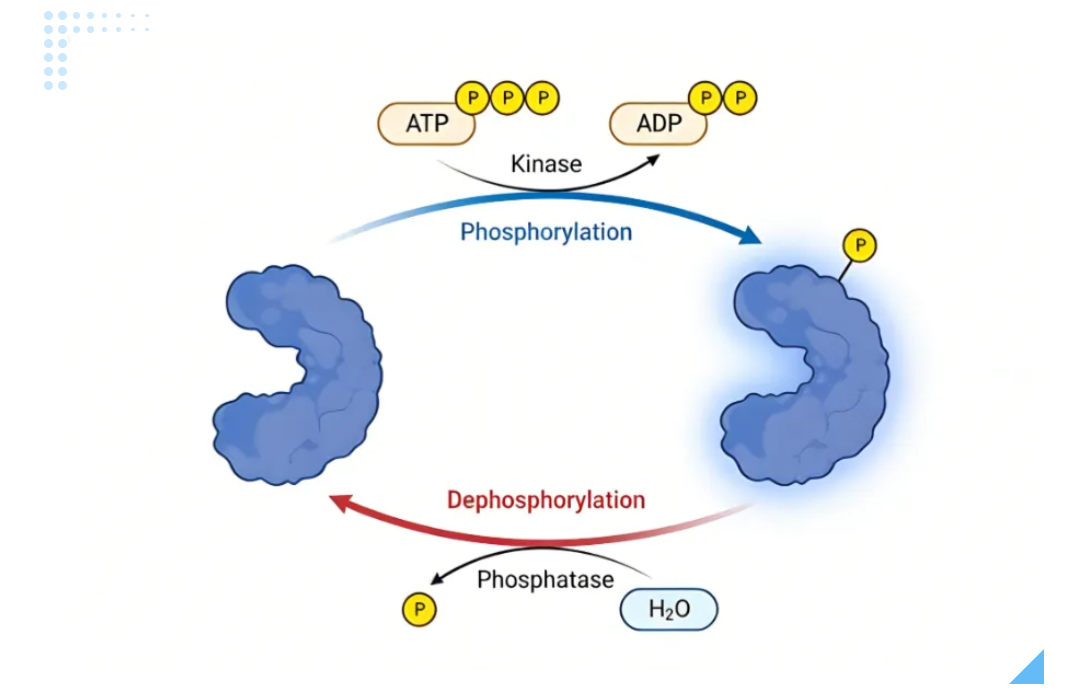 在生命科學的分子世界里,蛋白質(zhì)是生命活動的直接執(zhí)行者。然而,蛋白質(zhì)并非靜態(tài)的磚塊,而是動態(tài)的分子機器。為了應(yīng)對外界環(huán)境的瞬息萬變,細胞演化出了一套精密的調(diào)控系統(tǒng),其中蛋白磷酸化是最常見、最重要的一種翻譯后修飾方式。它像一個無形的開關(guān),通過快速、可逆的化學修飾,精確控制著蛋白質(zhì)的活力、定位與功能,從而決定細胞的命運。