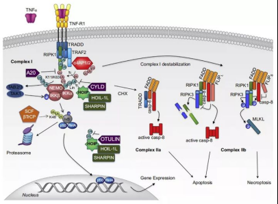 TNF與相應(yīng)受體結(jié)合后向細(xì)胞內(nèi)移,被靶細(xì)胞溶酶體攝取導(dǎo)致溶酶體穩(wěn)定性降低,各種酶外泄,引起細(xì)胞溶解。也有認(rèn)為TNFN激活磷脂酶A2,釋放超氧化物而引起DNA斷裂,磷脂酶A2抑制劑可降低TNF的抗病效應(yīng)。TNF可或改變靶細(xì)胞糖代謝,使細(xì)胞內(nèi)pH降低,導(dǎo)致細(xì)胞死亡。