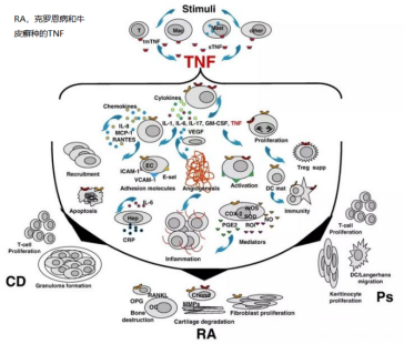 應(yīng)用TNF在治療腫瘤等方面開始臨床Ⅱ期試驗(yàn),也可與IL-2聯(lián)人事治療腫瘤,目前認(rèn)為全身用藥的療效不及局部用藥,后者如病灶內(nèi)注射,局部濃度高且副作用也較輕。近年來已采用TNF基因治療開始對黑素瘤等腫瘤進(jìn)行臨床驗(yàn)證。值得重視的TNF又與臨床某些疾病的發(fā)生有關(guān)。