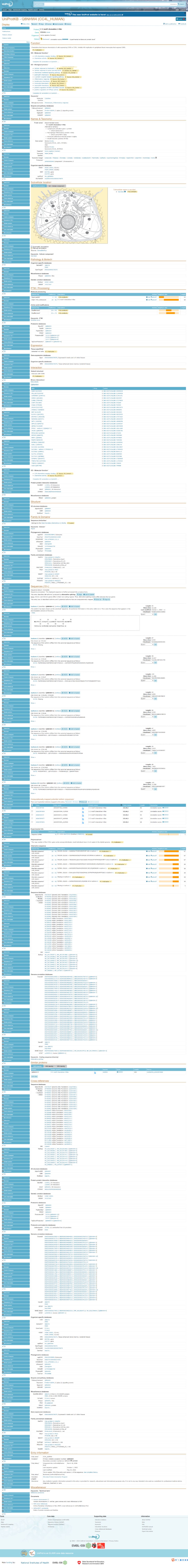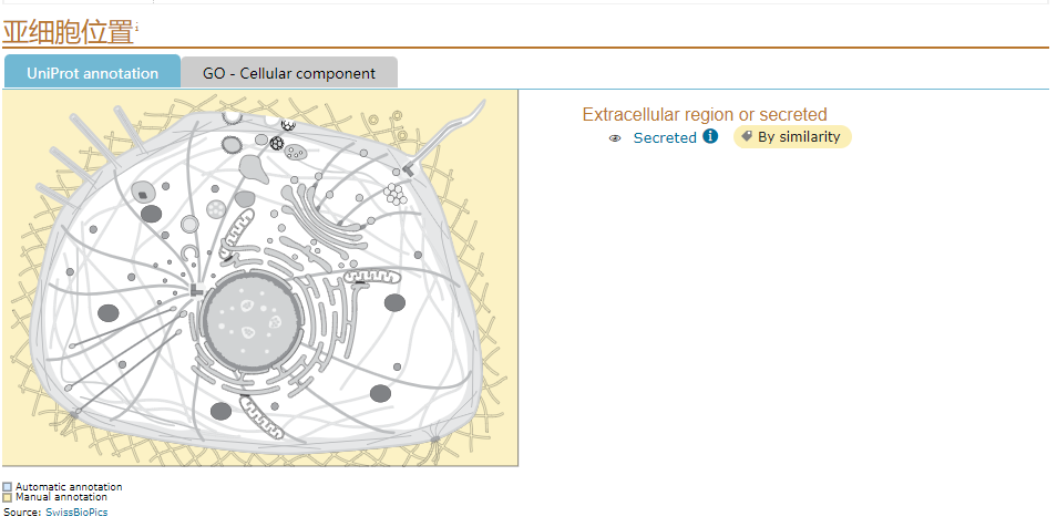 我們以HUMAN CCL4L2為例,搜索其在Uniprot數(shù)據(jù)庫(kù)中的信息,如下圖,頁(yè)面默認(rèn)顯示Entry模式,頁(yè)面顯示內(nèi)容包括:蛋白名稱(chēng)、物種來(lái)源、GO功能注釋、亞細(xì)胞定位、組織特異性表達(dá)情況、互作蛋白、Domain、序列信息、同源蛋白以及其他數(shù)據(jù)鏈接等信息。