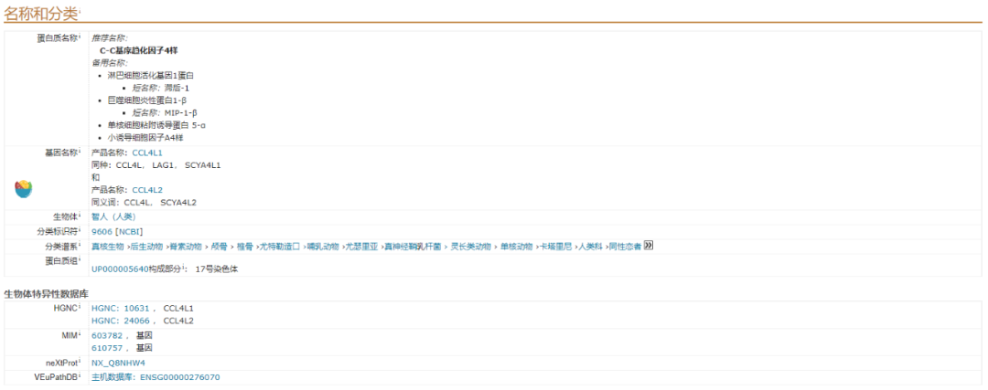 對(duì)于科研試劑銷(xiāo)售工作者來(lái)說(shuō),用的比較多的是這個(gè)板塊,該板塊展示的是命名(其中包括蛋白名,基因名)和來(lái)源種屬信息,如需要可以直接跳轉(zhuǎn)到NCBI、Enzem數(shù)據(jù)庫(kù)進(jìn)行查詢(xún)。