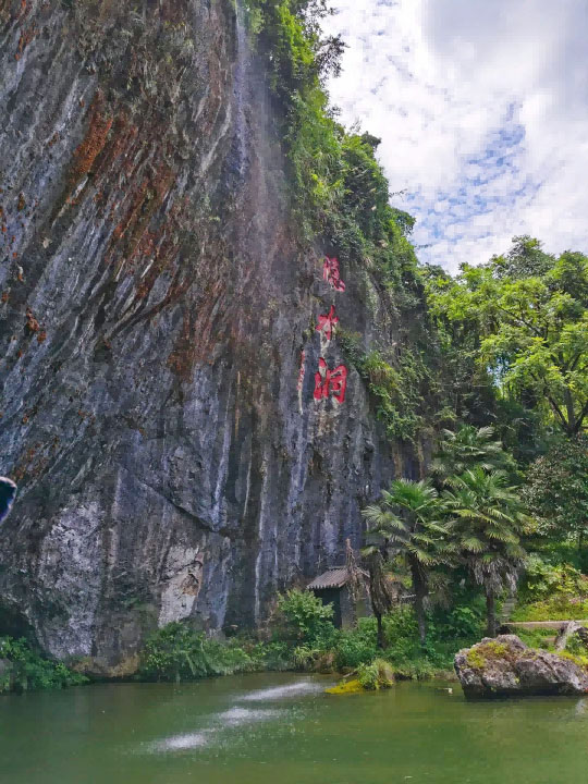 站在洞口,抬首仰望,“隱水洞”三個(gè)剛勁有力的大字鐫刻于一座巨石之上,從上面飛瀉的瀑布直落澤潭,落水擊石聚成小河,緩緩流入洞中。步入洞內(nèi),石筍、石幔、石幕、石瀑玲瓏剔透,溶洞、水流、瀑泉、乳石渾然一體。大自然的鬼斧神工讓人不得為之驚嘆,從心底越發(fā)地敬畏自然。自然界的智慧與本領(lǐng)浩瀚無垠,人類所能領(lǐng)悟的不過千萬分之一而已。在如此神奇的自然景象面前,我們不能不將心低到塵埃中去。即使我們是一群科研工作者,我們努力追求科學(xué)與真理,努力去揭示事物的本質(zhì),我們也并不一定比誰更懂得珍惜大自然的奧妙。其實(shí)科研工作者更需要對自然界懷有崇敬之心,這樣才能明白我們在探索自然改造自然的過程中必須“有所為,有所不為”。