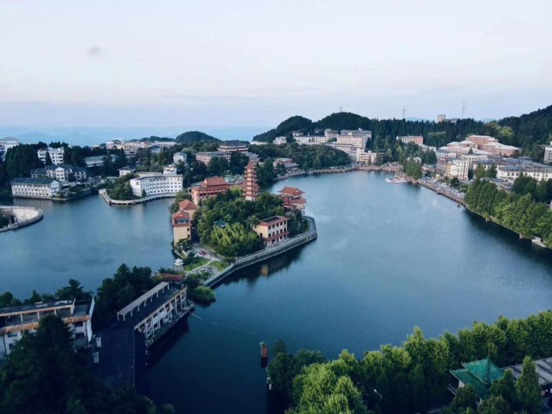 九宮山西連衡岳,東接匡廬,廣袤數(shù)百里,九宮山森林公園存有大片原始森林和第四紀(jì)冰川遺跡,內(nèi)有近千種名貴動植物,近百種珍稀瀕危物種,被稱作景象萬千的“森林都市”景點(diǎn)。云中湖是九宮山鎮(zhèn)所在地,也是九宮山旅游的食宿基地。是一個(gè)以人文景觀為主的中心風(fēng)景區(qū),主要有青松迎客、泉崖噴雪(瀑布)、真君石殿、吳雄楚關(guān)、烏龜朝圣和銅鼓擂天。