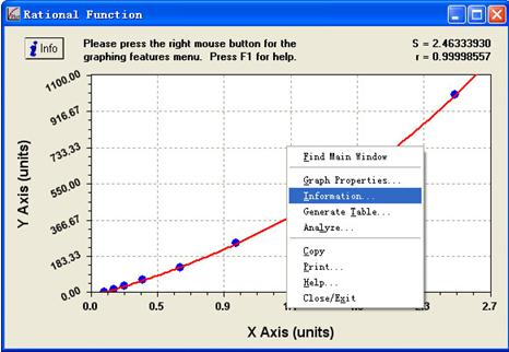 9. 如想得到 ELISA 擬合曲線的方程,可在步驟 6 的對話框空白處右擊,選擇”Information”