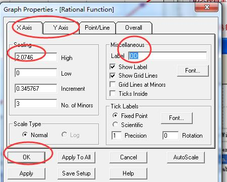 11. 修改作圖中 X,Y 坐標(biāo)軸高度以及相關(guān)屬性 選擇步驟 9 所示圖中的第二排“Graph Properties”,修改好后點擊 OK 保存