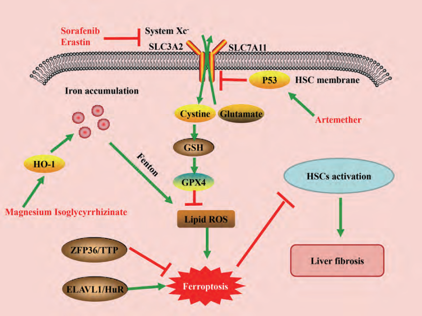 圖1:鐵死亡在肝纖維化中的相關調(diào)控途徑